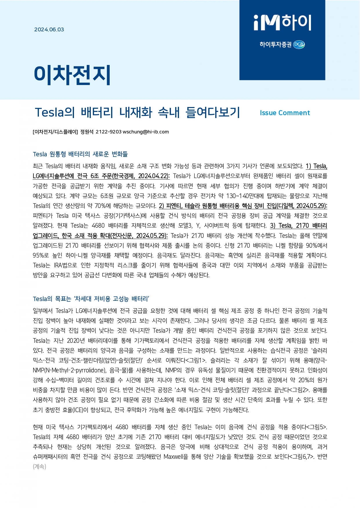 차세대 저비용 고성능 배터리 목표 수립 下 비용 높은 습식 공정 배터리 납품 받는 구조에서 비용 낮은 건식 공정 배터리 자체 생산 하려는 계획