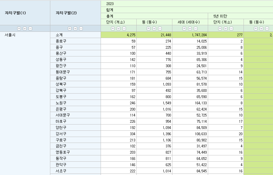 서울 주요 상급지의 아파트 세대수는 687,240세대