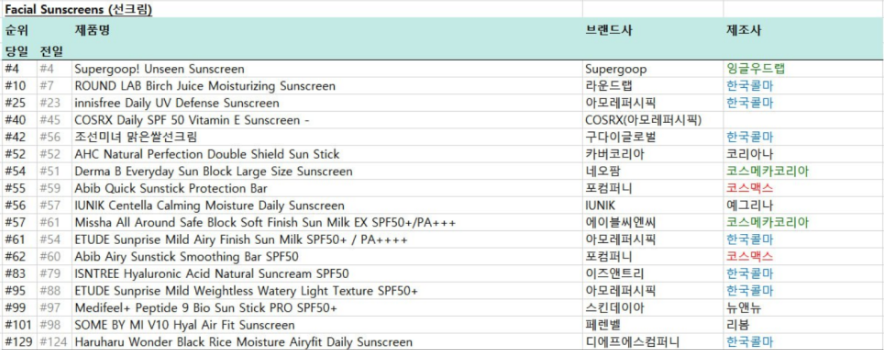 - 23년이후 FDA 등록한 선케어 제품 : 잉글우드랩 99개, 한국콜마 18개, 코스맥스 25개
