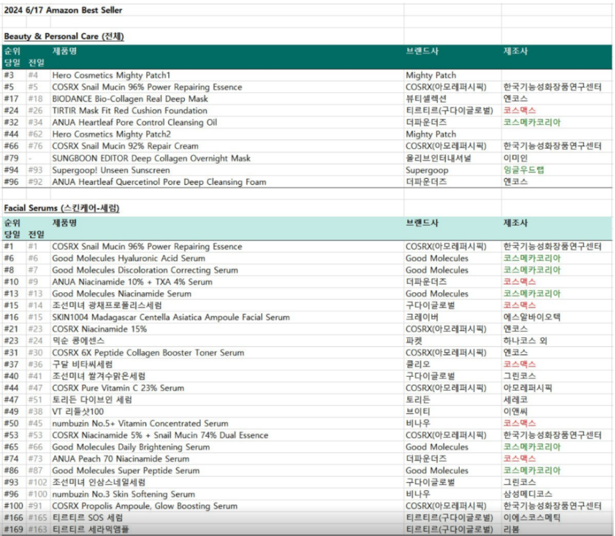 아누아 클렌징 오일, 믹순 클렌징 오일, 굿몰큘 세럼 등 주요 순위권 제품들 고객사로 보유