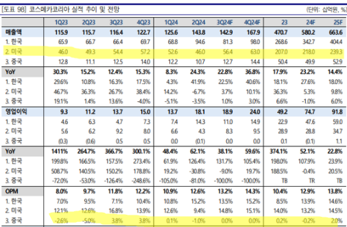 - '24년 1분기 콜마 가동률은 102%, 미국 법인 30.9%, 캐나다 법인 26.5%