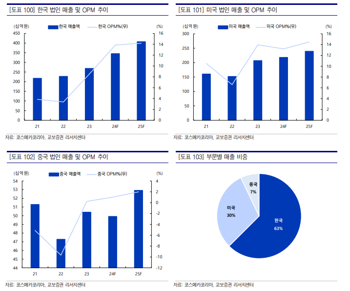 - 2Q24 기준 기초 64%, 기능성/OTC 27%, 색조 7%, 기타 1%로 부가가치 높은 기초 및 기능성 제품 비중 高