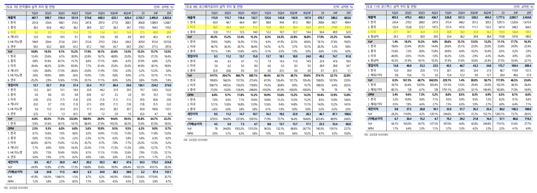- (아래 매출 테이블) 코스메카의 중국 opm은 23년 3분기 부터 (+)로 전환하고 미국 법인의 수익성 double digit, 반면 콜마의 미국 법인 수익성 (-) double digit