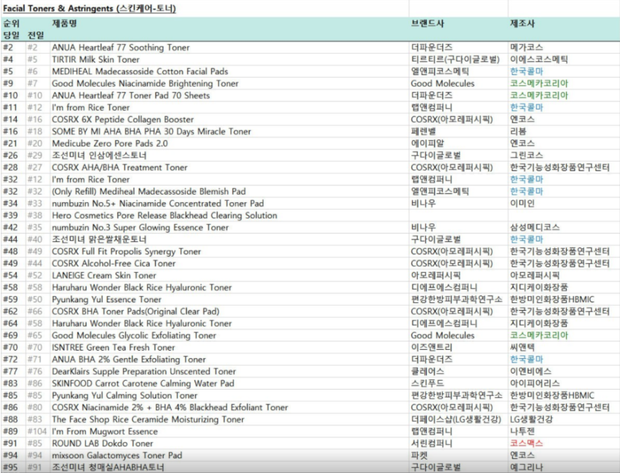 - 저가 마스크팩(전년 동기 1위)은 80% 축소
