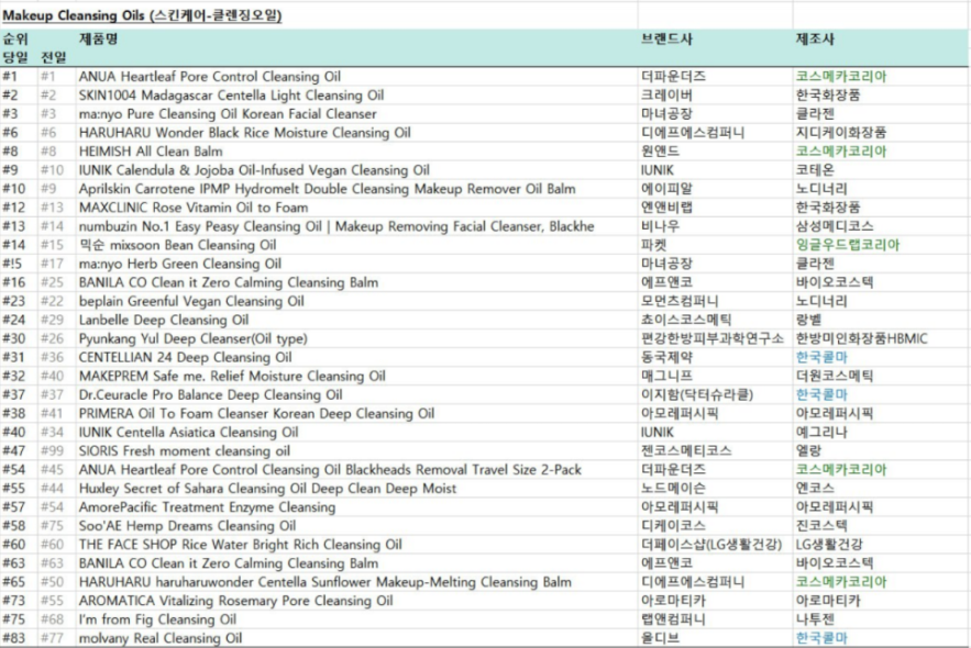 - (코스메카 담당자) 경쟁 2사 대비 클렌져, 클렌징오일 등 클렌징 제품 인기 高