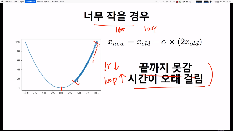 Gradient descent approach에는 두개의 파라미터가 존재하는데, 하나는 몇번 식을 수행할건지에 대한 루프이며, 하나는 learning rate(알파)이다.