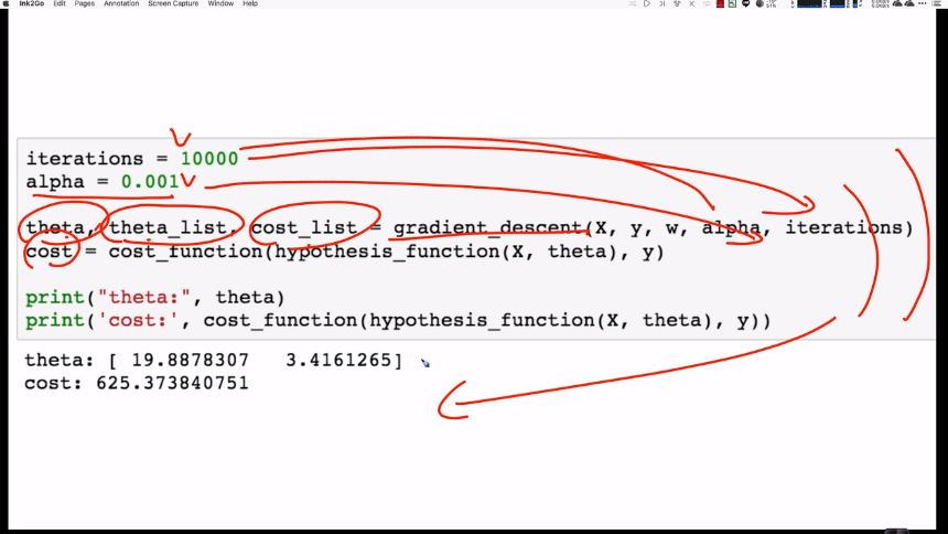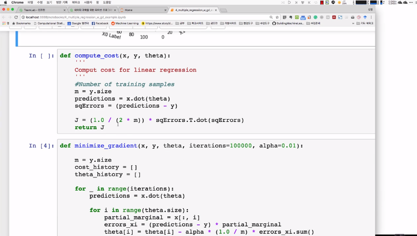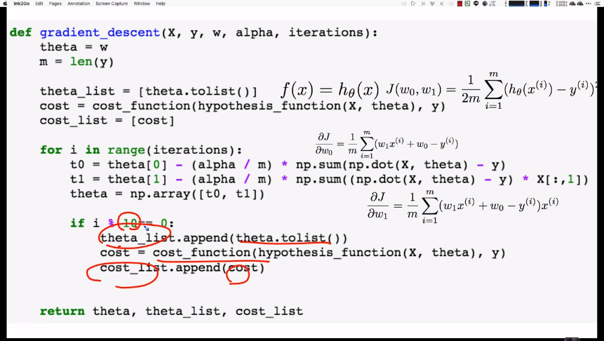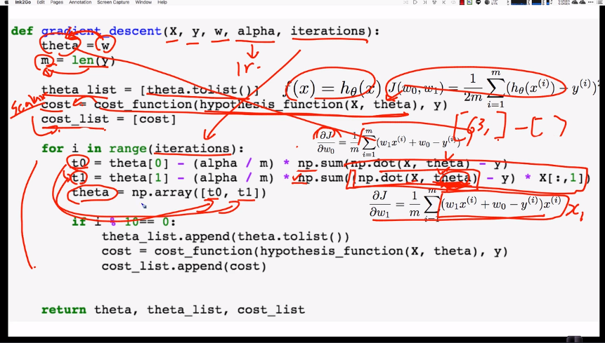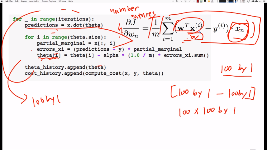theta[i] = theta[i] - (alpha/m) * np.sum((y_prediction - y) * X[:,i])