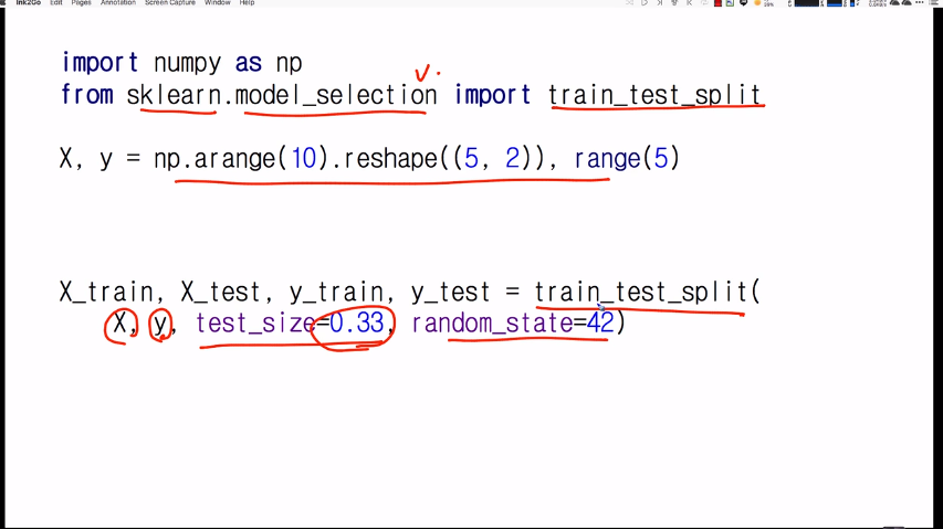 # %param$ [X] : numpy array, 2차원 matrix 형태로 [n_samples,n_features] 구조를 가진다