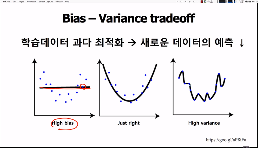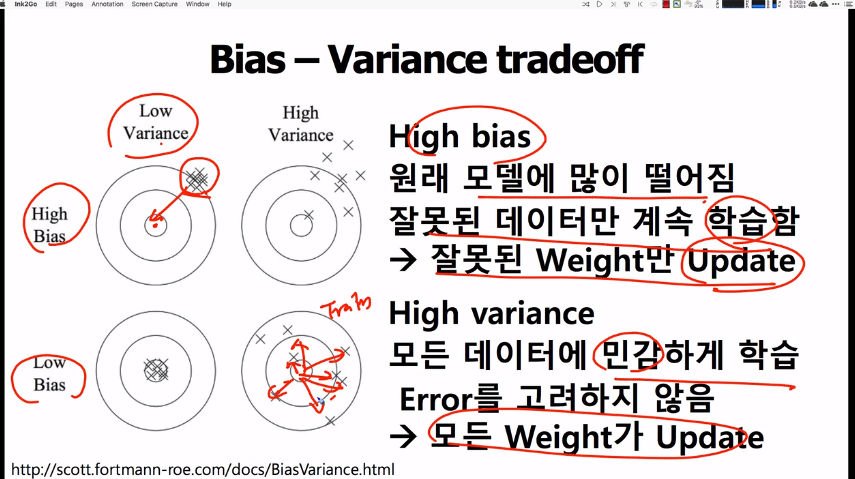 ・Bias(편향)이란 최저점이 되는 weight값에 가까이 가지 못하고, 편향되어 딴 곳에서 겉돌고 있는 것을 의미한다.