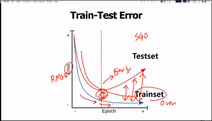 ・Overfitting된 데이터의 경우, Trainset에는 놀라울 정도로 잘 맞아떨어지지만 Testset의 값에 따른 결과는 예측해내지 못해는 모델이 된다. 테스트가 진행될 수록 (epoch)이 증가할 수록 trainset의 결과와 점점 멀어진다.