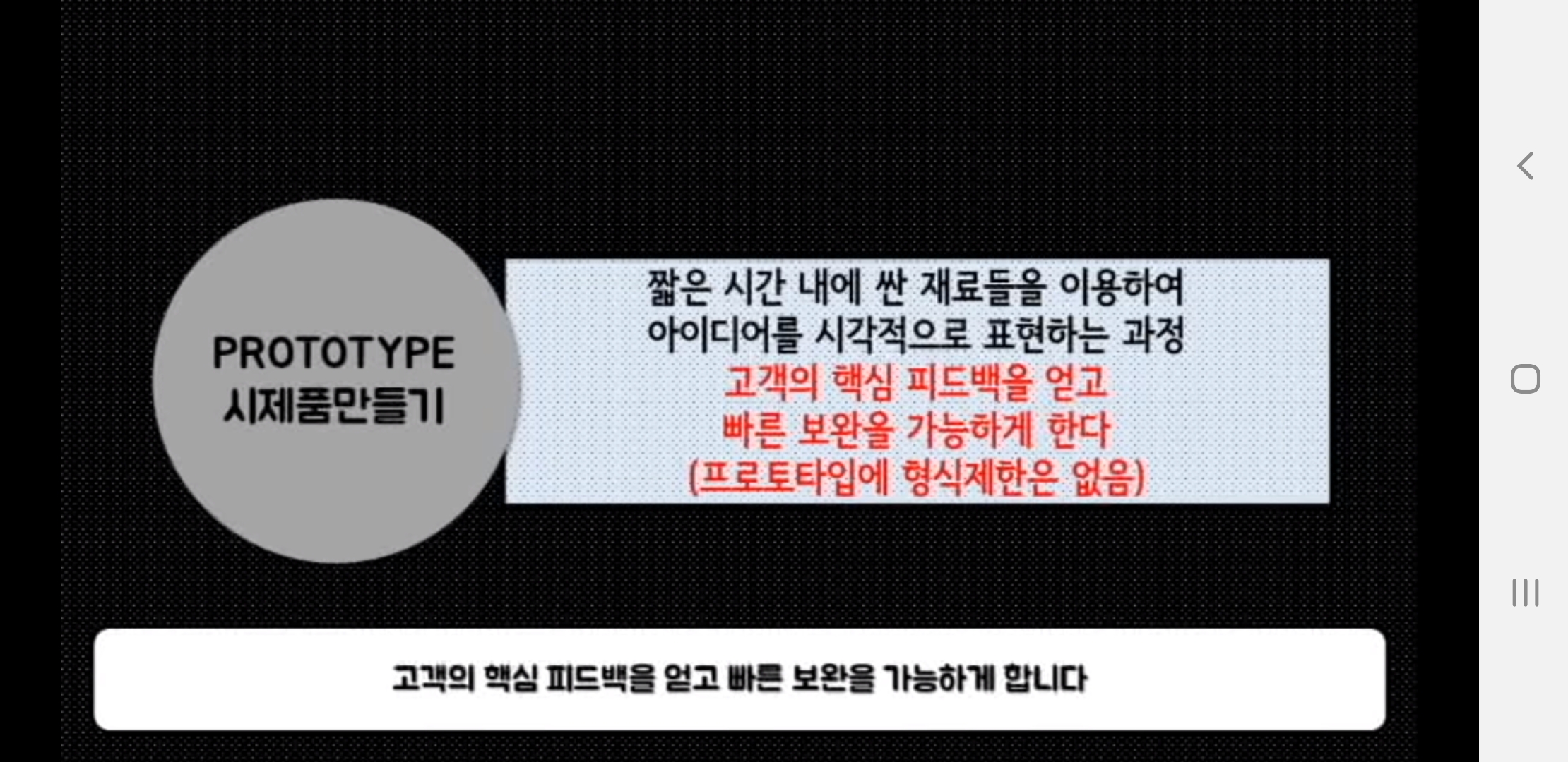 - 프로토타입을 만들기 전에 유저에게 필수적인 최소한의 조건만을 조사하여 시제품을 만든다.