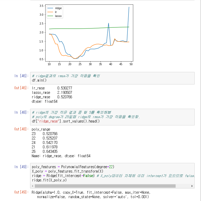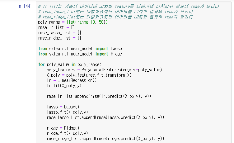 ・Ridge는 L2 regularzation, Lasso는 L1 regularzation을 의미