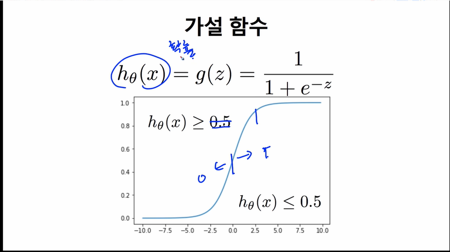 ・위위의 스크린 샷에서, y의 값에 따라 비용함수가 바뀌므로, 위와같은 식으로 비용함수가 정의된다.
