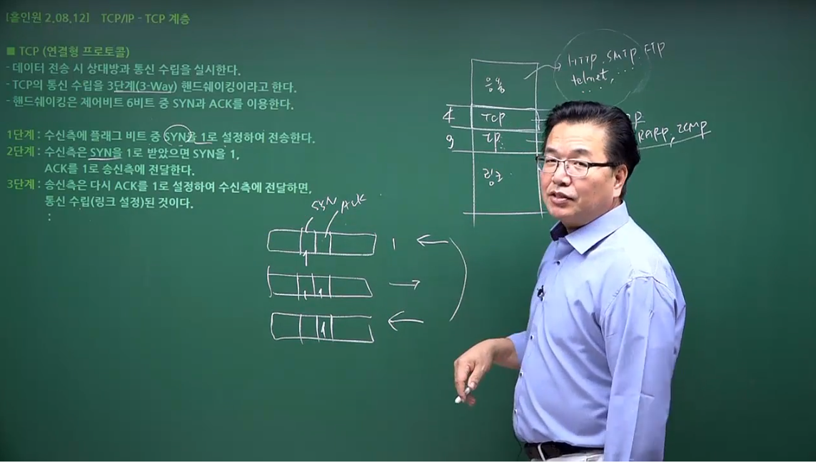 수신 : 안녕 데이터 잘 왔어(SYN:1, ACK:1)