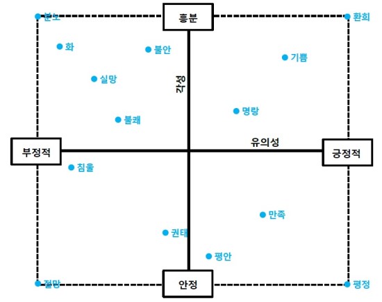 감정(emotion)은 '느끼어 일어나는 심정. 마음. 기분' 또는 '슬픔·기쁨·좋음· 싫음 따위의 심리 상태나 직감' 즉 '희노애락애오욕'과 같은 것을 말하는데 심리학적인 용어라고 볼 수 있습니다.