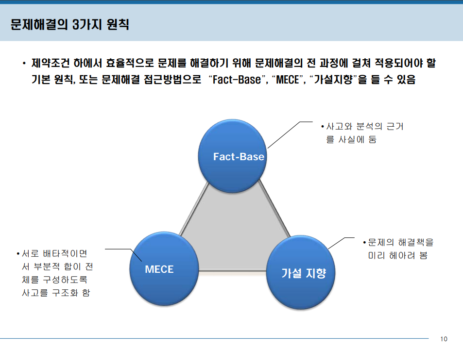 장점 : 급격하게 변화하는 상황에서 여러가지 변수를 고려하여 원인을 분석하고 해결책을 생각하기 때문에, 가장 리스크가 적은 문제해결법이다. 시간은 많지만 신중하게 고려해야할 필요가 있을때 사용해야 한다.