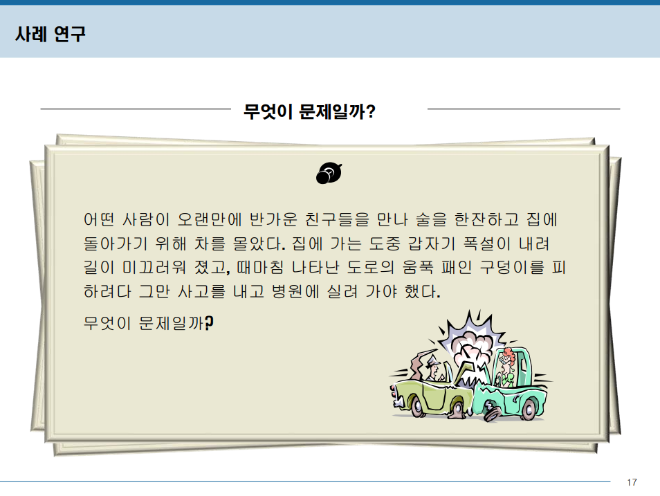 문제를 문제자체로 인식하지 못하는 이유는 목표나 현재상태를 인식하는 능력이 없거나 부족하기 때문이다.