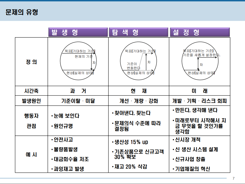 발생형 문제는 눈에 보이는 문제이기 때문에 가장 인식하기가 쉽고, 원인을 규명하면 해결책이 자연스레 마련되기 때문에 문제해결을 마련하기도 쉽다. -