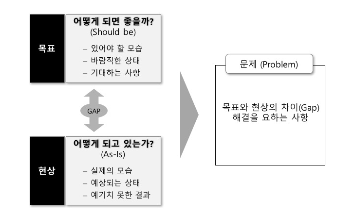 문제란 목표와 현상의 GAP이므로, 목표와 현상을 명확히 해야 문제가 무엇인지 인식할 수 있습니다.