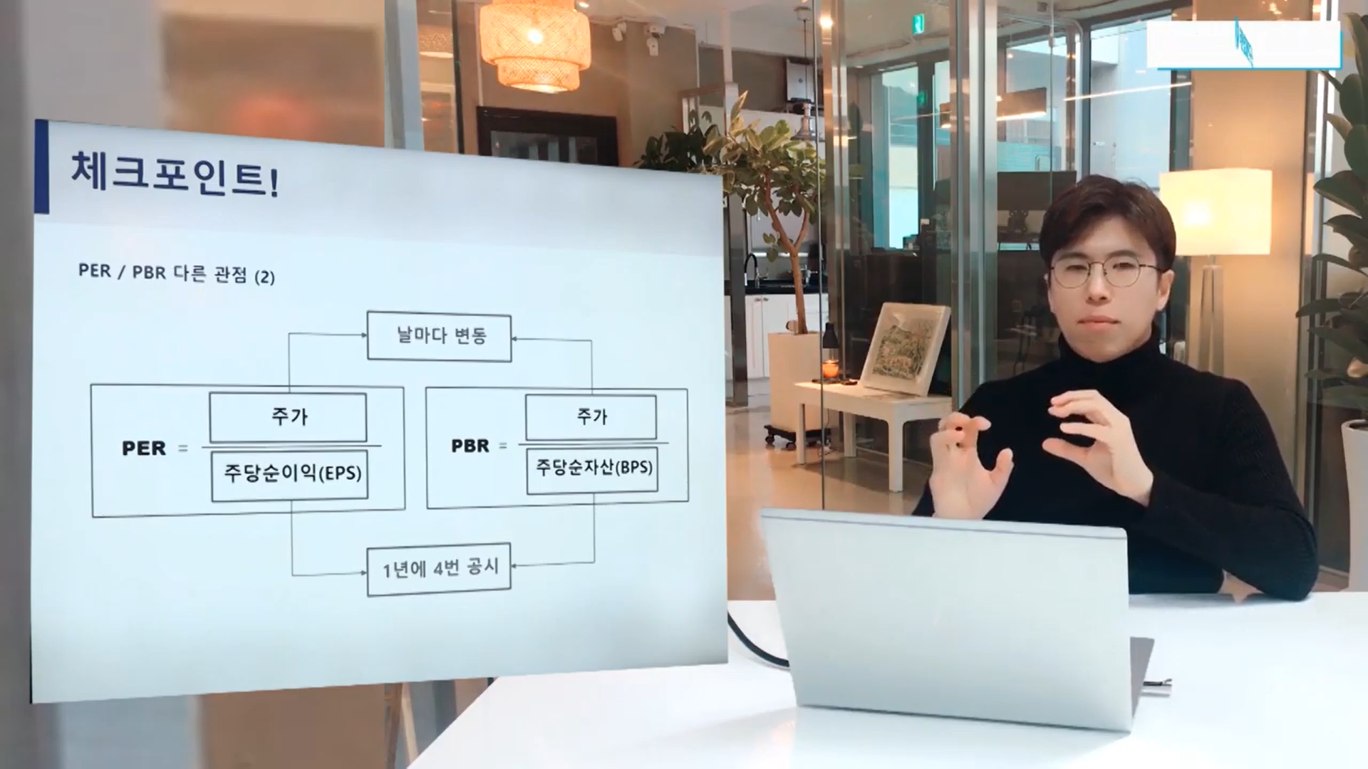 - 따라서 오로지 주가만이 PER에 영향을 미치게 됨