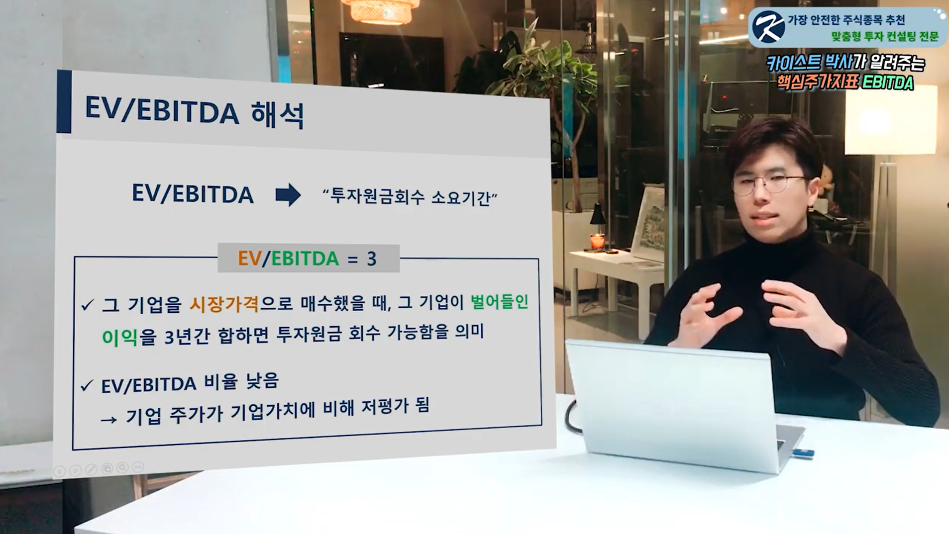 시장가치 EV는 기업의 시가총액과 순부채을 더해서 산출합니다. 시가총액이라는 것은 기업의 주식 총 가치를 뜻하며, 총 발행 주식 수에 주가를 곱한 가격으로 산출됩니다. 만약, 기업이 우선주를 발행했다면, 시가총액에 우선주에 대한 부분을 추가하게 됩니다. 시가총액과 순부채을 더함으로써 기업의 시장 가치를 판단하는 이유는 기업을 누군가가 매수할 때는 기업의 시장 가치와 더불어 해당 기업이 차입한 모든 부채까지 모두 매입하는 것이기 때문입니다.