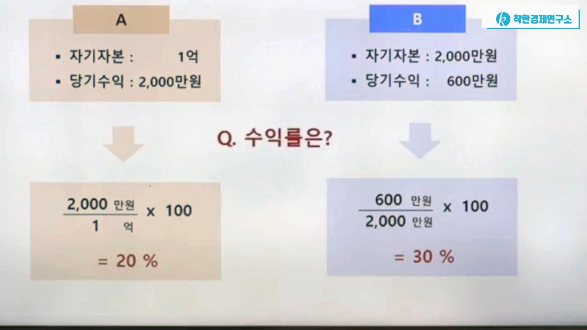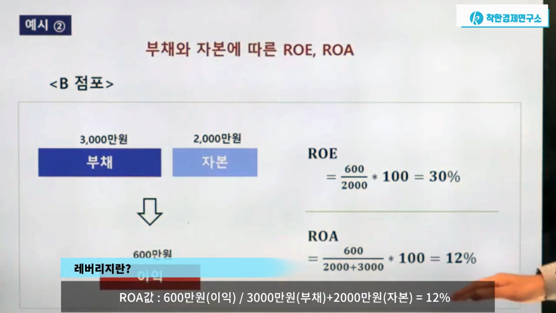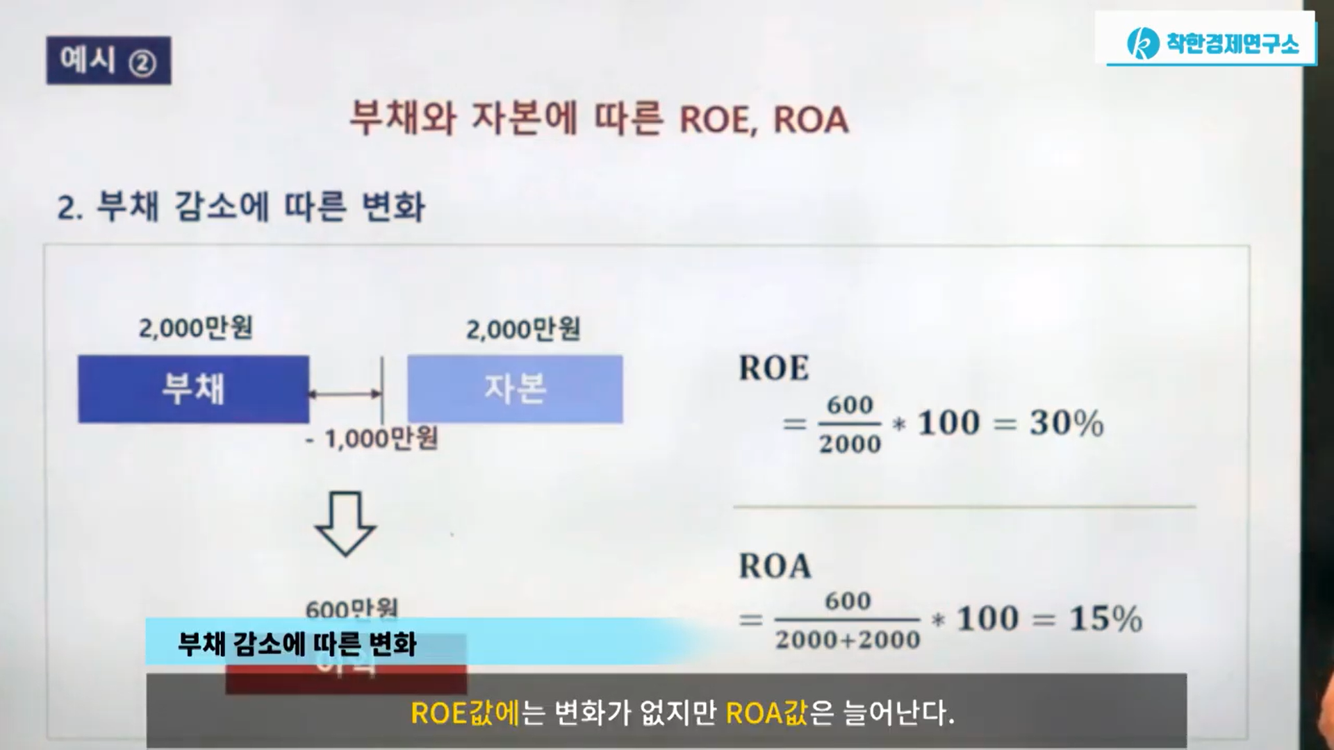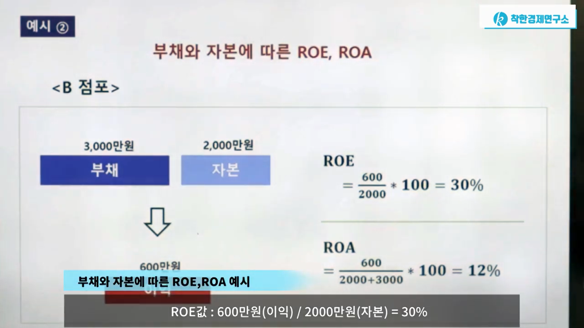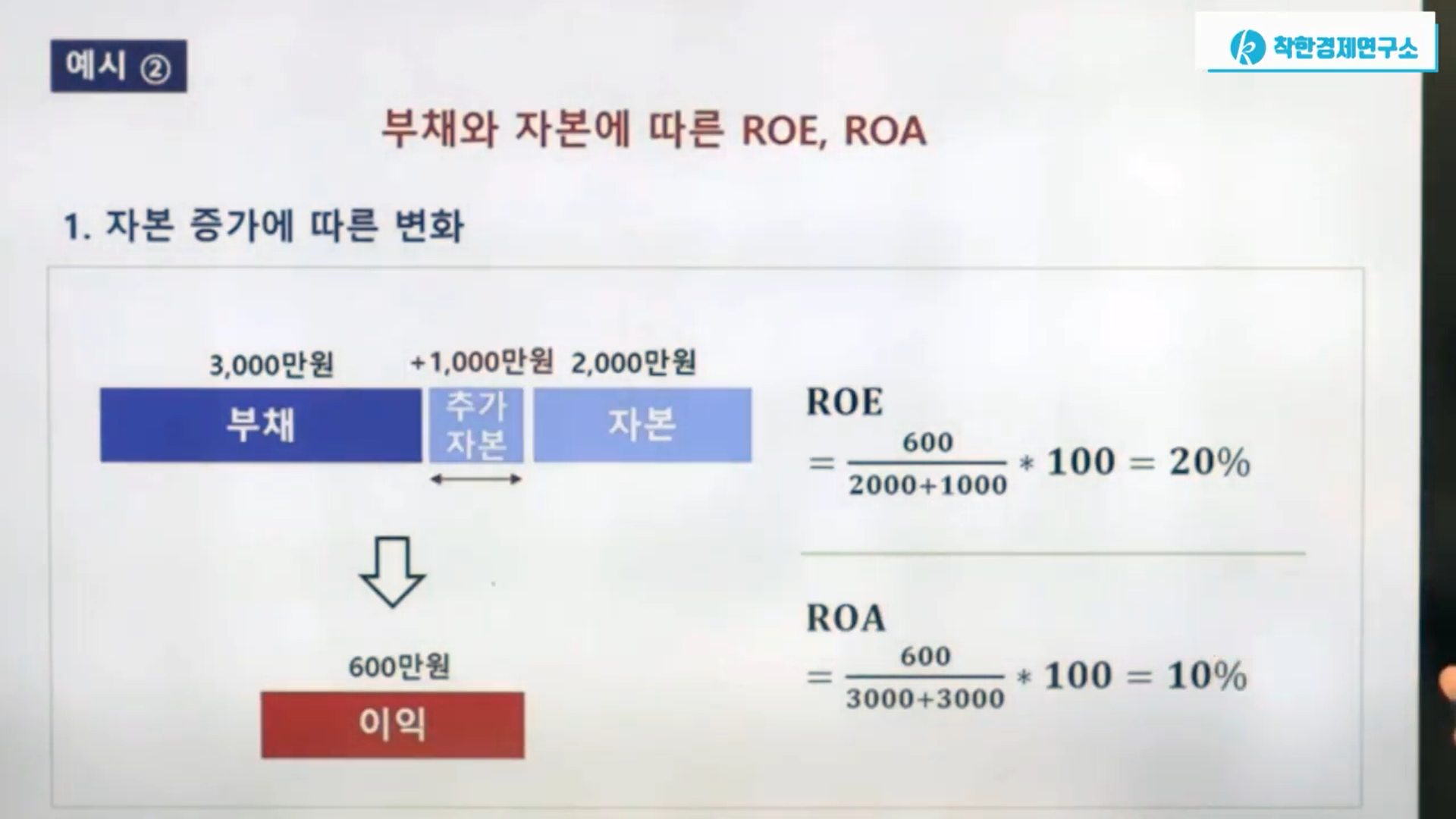 ROA = 당기순이익/총자산 = 당기순이익/자기자본 + 부채