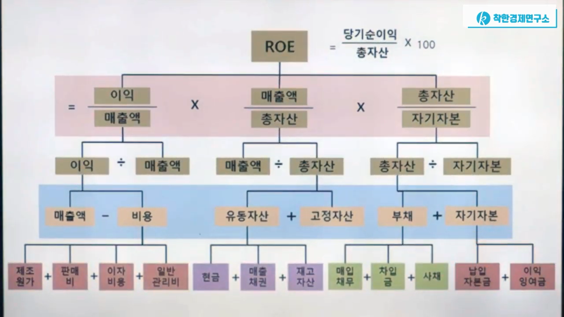 위의 ROE메시 구조화는 어떤 배경으로 ROE가 증가/감소 하였는지 파악할 수 있게 해준다.