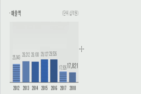 2017년 매출의 대폭감소 이후 매출이 감소된채로 유지되고 있다.