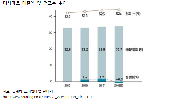 대형마트 시장은 시장 규모가 점점 감소하고 있다.