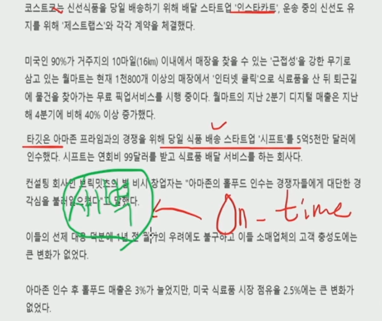 자료3-8 : 기사(아마존의 당일 식품 배송 스타트업 인수)