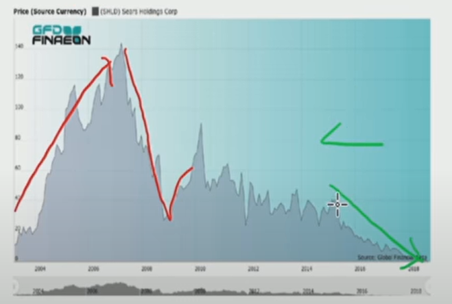 자료1-6 : 시어스(미국의 대표적 오프라인 유통업체)의 기업가치 그래프