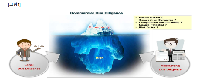 [그림1]에서 보듯이 Legal Due Diligence아 Accounting Due Diligence는 기업의 보이지 않는 불확실한 Risk에 초점을 두고 있다면 Commercial Due Diligence 는 기업이 성장할 미래의 기회의 크기를 보는데 초점을 두고 있다고 표현하는 것이 정확할 것이다.