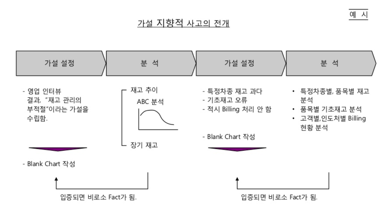 가설 사고로 문제를 해결할 때는 다음과 같은 과정을 거친다.