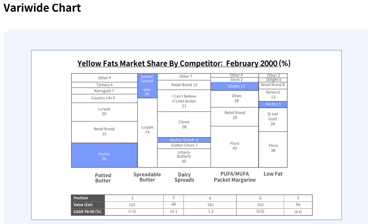 시장별 마켓쉐어를 한눈에 보기 편함