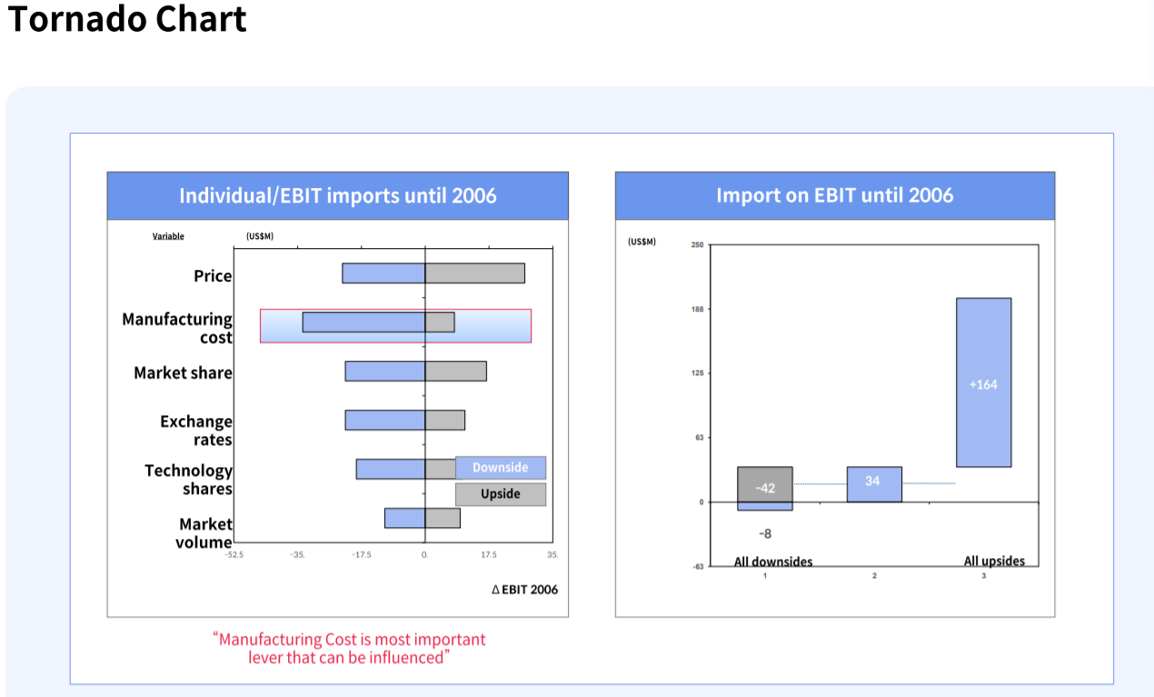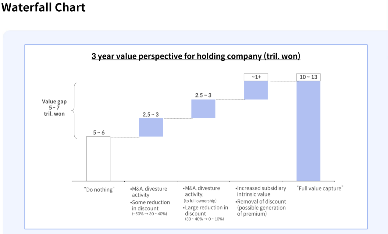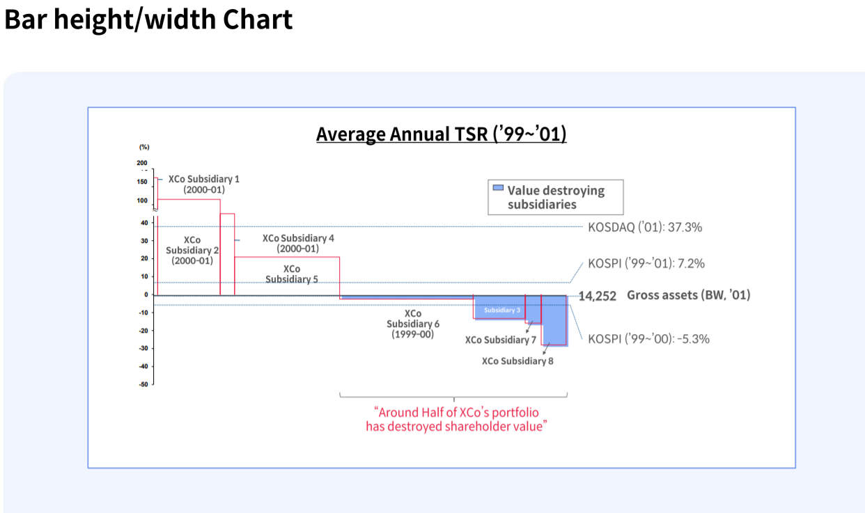 현재 가치 대비 앞으로의 액션에 의해 변동 가치를 보여줄 때 유효, 주로 활용되는 씬은 M&A에서 벨류에이션시