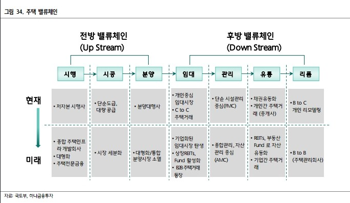 - 부동산 개발: 부동산 개발이라는 건 토지를 매입을 해서 그 곳에 건축물을 세우는 업무. 주거, 업무 시설, 상업시설, 물류, 공장, 리조트 등 다양한 건축물을 토지에 기획하고 건축. 그 안에 다양한 일들 건설회사, 설계사, 시공사, 금융사를 붙여서 설계, 금융, 분양 등에 관해 전체적으로 총괄하는 프로젝트 매니저. 초기 기획, 매입부터 준공, 운용까지 넓은 스펙트럼의 업무. 몇 년 전만해도 준공까지가 끝나는 시점이었는데 이제는 준공 이후의 건물 운용, 임대차 , 매매, 건물 관리, 사후 관리까지 진입