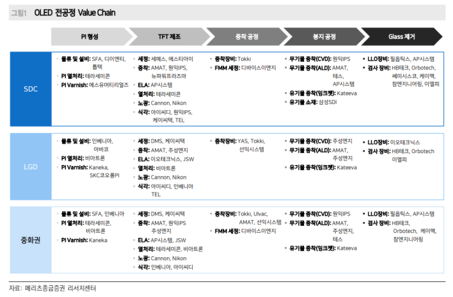 - 밸류체인은 디스플레이의 종류에 따라 다르지만, 최근 가장 수요가 높은 OLED를 기준으로 함