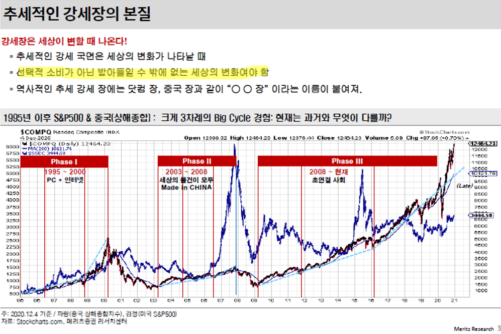 여기에서 중요한 것은 위에 표의 좌측 하단에 적혀 있는 거시경제변수의 충격이 주가에 미치는 영향이 6개월 이후 거의 없었음 이라는 문구이다. 결국 거시변수도 6개월 이하의 단기에서만 영향을 미치고, 주가의 큰 흐름에 영향을 미치는 것은 선택적 소비가 아니라 소비자가 받아들일 수 밖에 없는 세상의 변화이다.