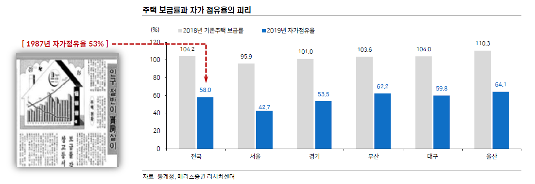 하지만, 뉴스를 보면 아직도 집없다는 사람이 많다. 이게 도대체 무슨 일인가? 그 이유는 자가점유율에 있다.