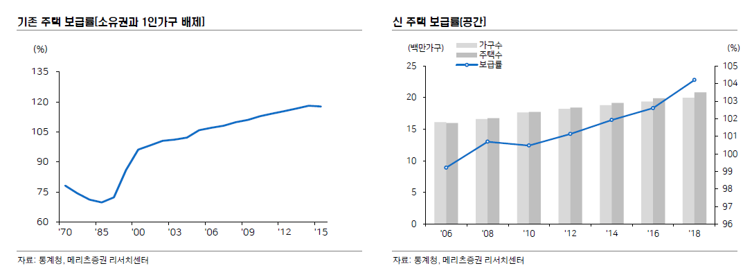 - 신주택 보급률 = 다가구 주택을 구분거처로 반영한 총주택수 / 1인가구를 일반가구로 산정한 총 가구수
