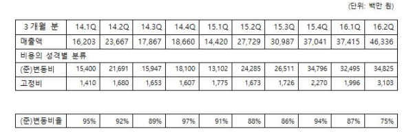 - 변동비는 매출이 증가할 수록 함께 비용은 고정이거나 매출상승률보다 작다.