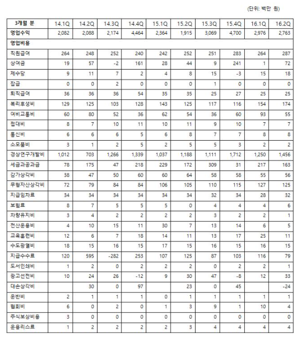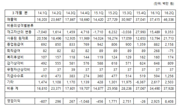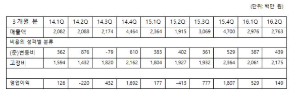 앞에서와 마찬가지로 각 기간별 매출액과 위 주석들을 정리, 비교해보면 다음과 같다.