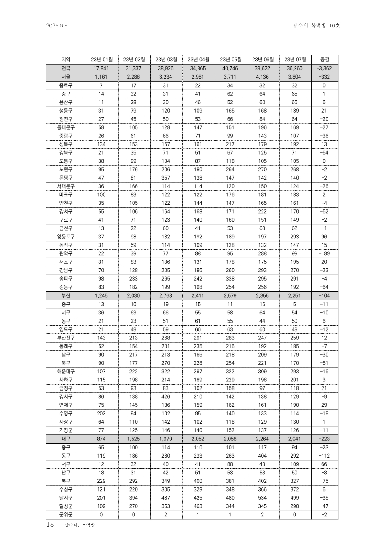'22년 6월부터 서울 서남권(구로) 및 동북권(노원) 과 같은 부동산 약세지역의 전세가 하락 Start