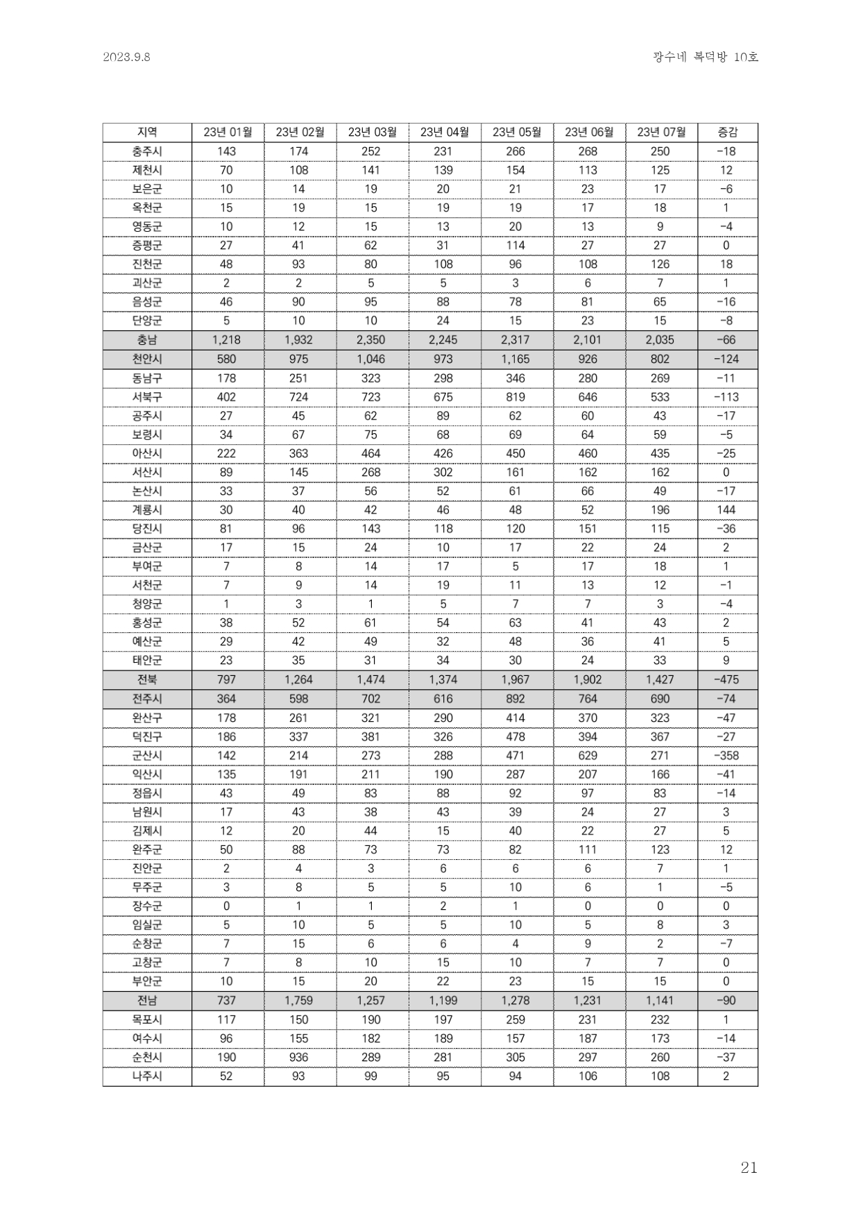 '22년 07년 기점으로 전월세 거래건수의 급격한 하락 발생