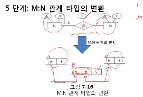 -1:1관계와 1:n관계에서는 한쪽에 fk를 주지만, n:m관계에서는 새로운 릴레이션R을 생성해 그 릴레이션에 fk를 준다.