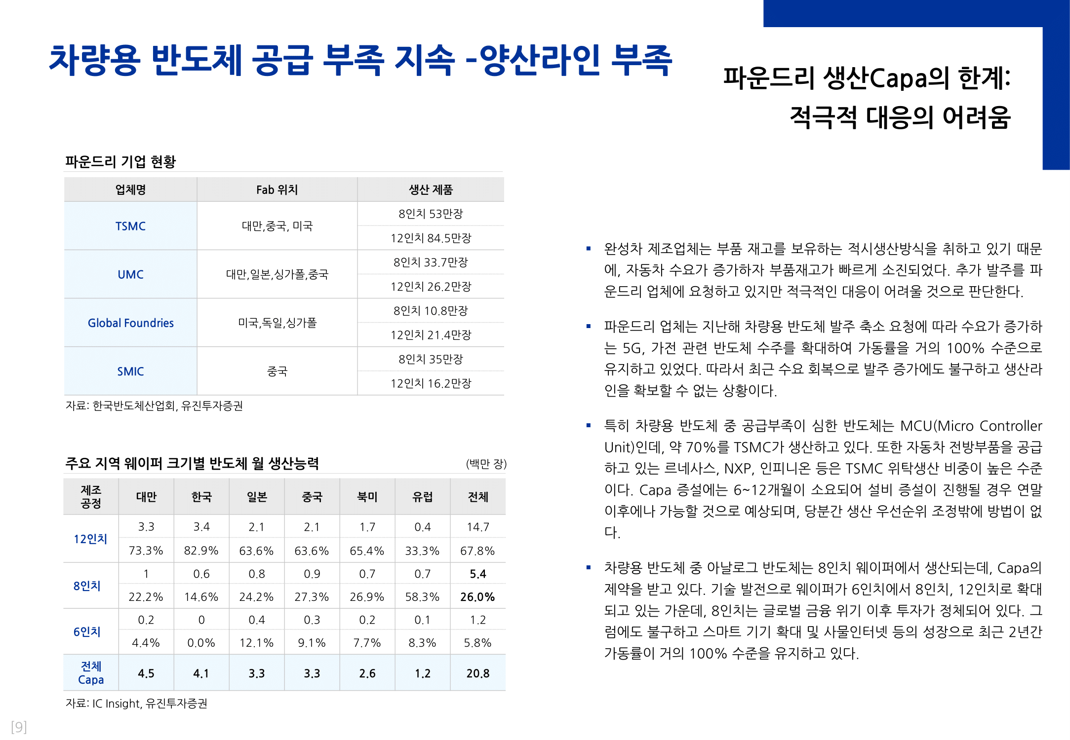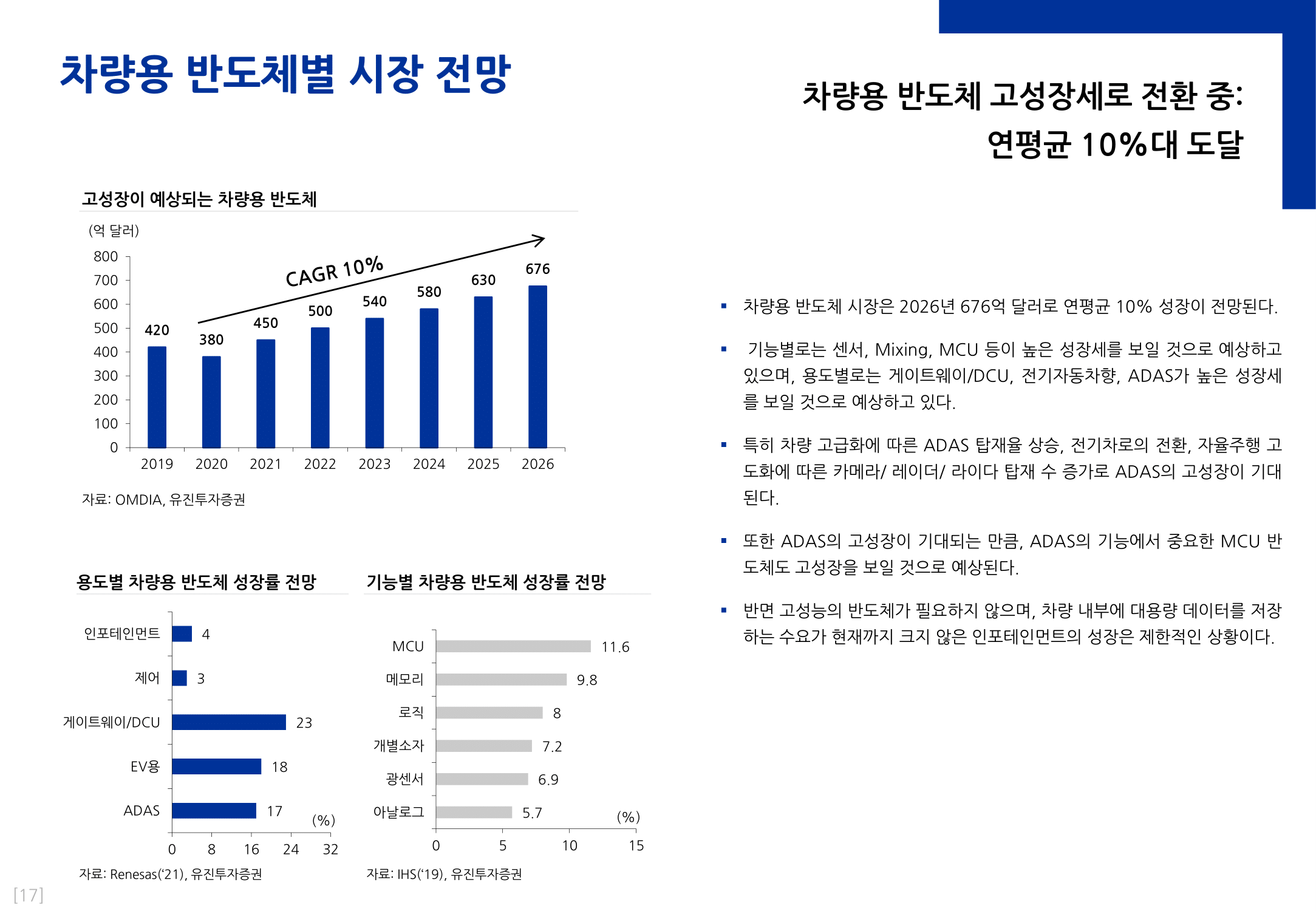 Finance Investment/반도체와반도체장비 차량용 반도체 시장 전망, 쇼티지 원인(전기차로 인한 구조적 수요 확대, 일시적 공급 부족) iliosncelini 2021. 6. 1. 22:33 차량용 반도체 전망.pdf 2.95MB 저작자표시 비영리 변경금지 (새창열림)