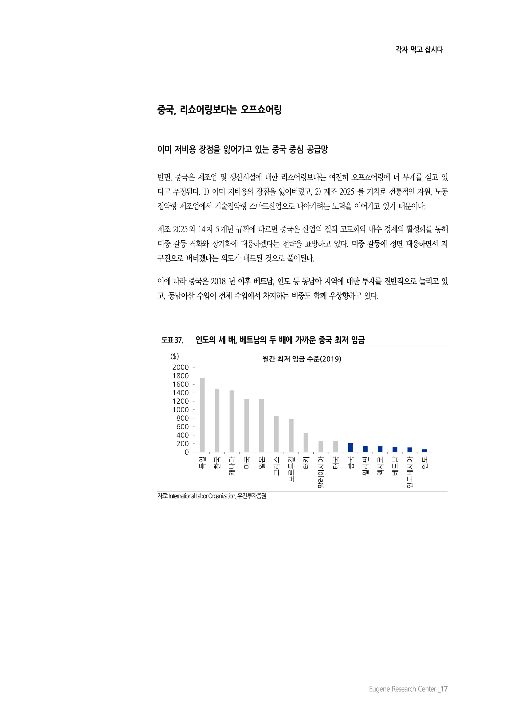 - 탈중국 리쇼어링 진행 중: 리쇼어링의 원인은 대표적으로 정치적 이슈로 해석됨.