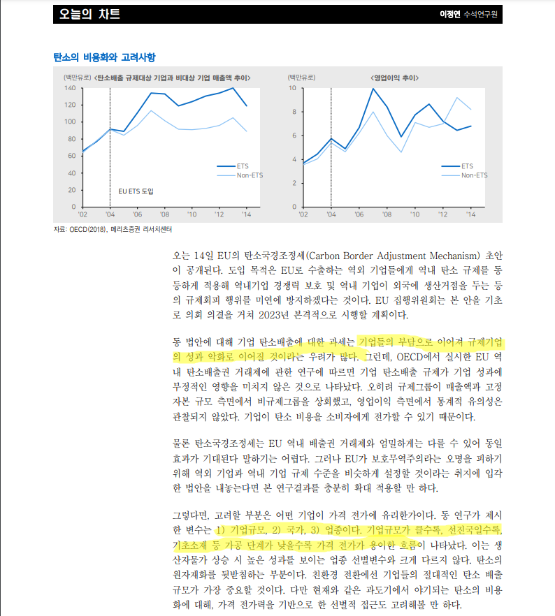 Finance Investment/Macro report 유럽 탄소세 도입, 가격전가가 용이한 기업일수록 세부담 감소(기업규모가 클수록, 선진국 일수록, 업스트림 일수록) iliosncelini 2021. 7. 14. 23:48 저작자표시 비영리 변경금지 (새창열림)