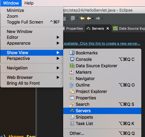 이클립스에서 Windows > Show View > Servers 를 눌러주면,