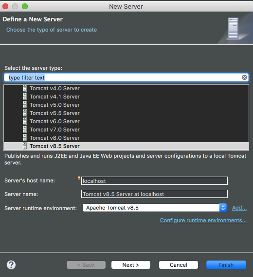 당신의 그 톰캣 버전을 선택하고 Finish를 눌러 완료해주면...